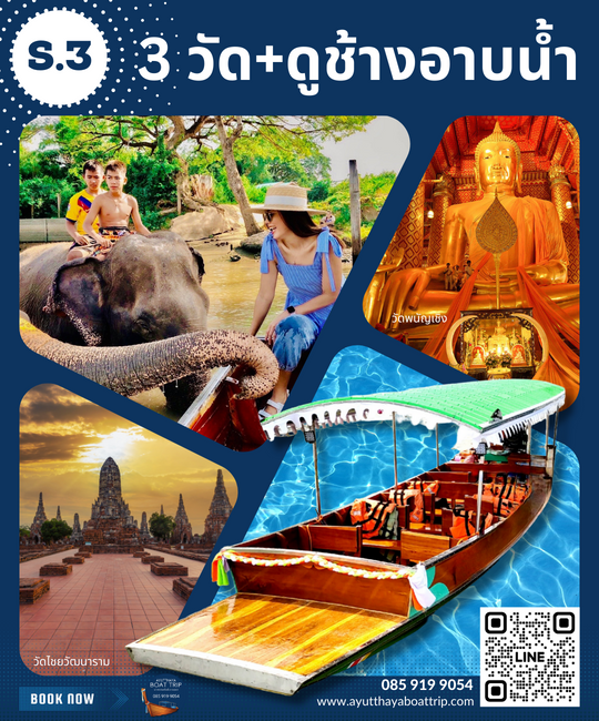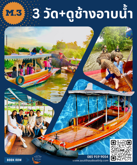 นั่งเรือ + ขึ้น3วัด + ดูช้างอาบน้ำ